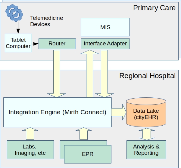 The project will run from January to June 2026, with an initial three month development phase, followed by deployment at the regional hospital. The integration will link telemedicine kits (originally supplied through funding from the World Bank) in nine primary care locations around Rivne, through the open source Mirth integration engine to a Data Lake (warehouse) implemented using cityEHR.