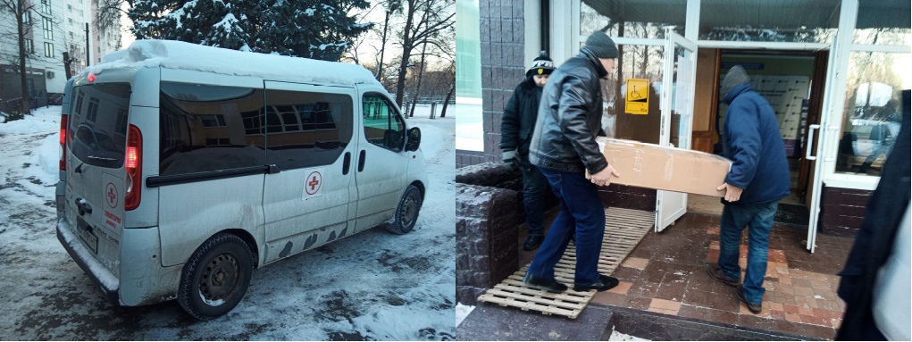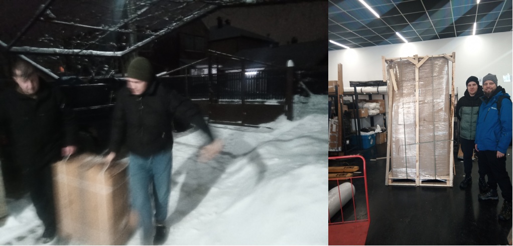 Across the border the snow conditions were quite treacherous but the truck arrived safely in a village just outside Lviv where the equipment was unloaded. From there a van was due to take it onward to Rivne but the snow had cut off the roads from there so it was instead left for the Ukrainian postal service (Nova Post) to pick up and deliver once the weather conditions improved.